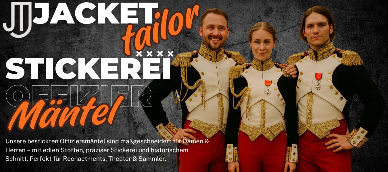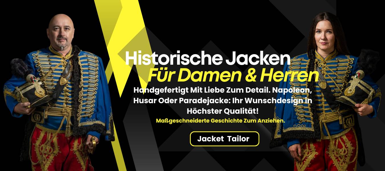 Fans von Geschichte kommen bei uns voll auf ihre Kosten! Unsere historischen Uniformen und Militärjacken wie Hussar Dolman Jacken, Napoleon Jacken oder Richard Sharpe Jacken bringen den Charme vergangener Epochen zurück. Ob britische napoleonische Zivilkleidung, gestickte Offiziersmäntel oder Uniformen des Bürgerkriegs wie Konföderierte Frock Coats und Konföderierte Sack Coats – bei Jacket Tailor findest du detailgetreue Militärparade-Jacken und historische Mäntel. Auch Highlander Jacken, Argyll Jacken, Prince Charlie Jacken, Sheriffmuir Jacken und Montrose Kilt Jacken für den schottischen Look sind im Angebot.